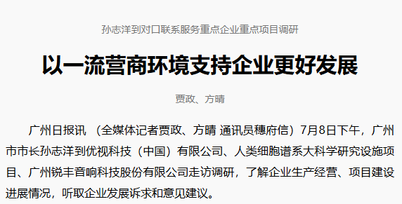 【广州日报】孙志洋到对口联系服务重点企业重点项目调研 以一流营商环境支持企业更好发展